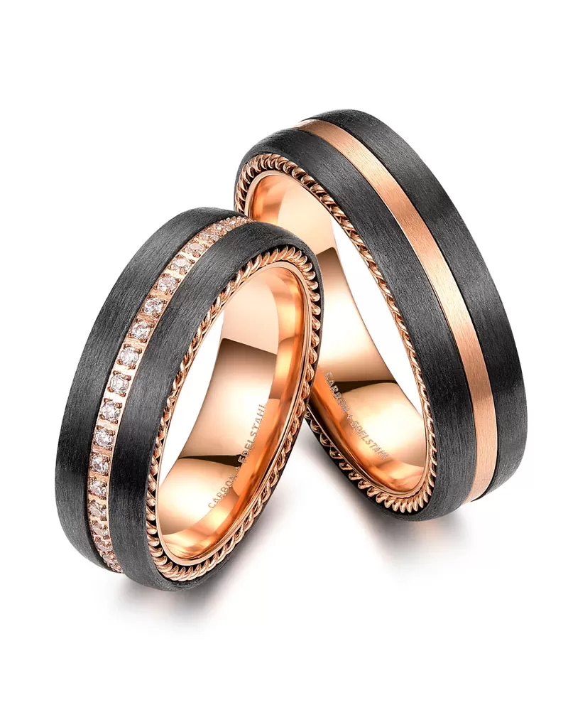 Oceľové ružové snubné prstene s karbónom SP-CA-003