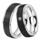 Model těchto snubních prstenů zaujme lesklými proužky a vnitřkem v kontrastu s černým karbonem uprostřed. V dámském prstenu je pečlivě vsazen jeden kulatý zirkon v briliantovém brusu Signity star, který dodává zirkonu maximální brilanci - krásně září z každého ůhlu pohledu! Snubní prsteny mají vnitřní Fit Profil – půlkulatou vnitřní stranu pro příjemnější nošení, nasazování a sundávání.