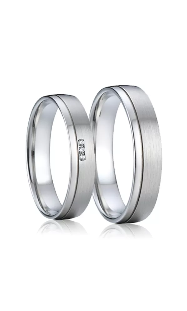 Veľmi obľúbené oceľové snubné prstene mierne polguľatého profilu s kombinovanou povrchovou úpravou lesk - zamatový mat, ktorý od seba oddeľuje jemná ryha. V dámskom prsteni sú vsadené do obdĺžnika tri okrúhle zirkóny s briliantovým brusom Signity star, ktorý dodáva zirkónom maximálnu brilanciu. Prstene majú vnútorný fit profil - zaoblenú vnútornú stranu pre príjemnejšie nosenie, nasadzovanie a odnímanie.