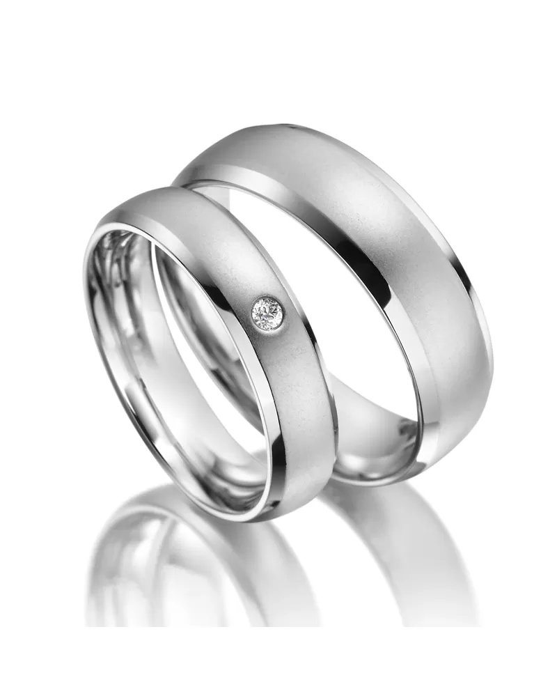 V jednoduchosti je krása!Oceľové snubné prstene mierne polguľatého profilu s kombinovanou povrchovou úpravou vysoký lesk a zamatový mat. Kraje prsteňa sú mierne skosené a sú lesklé. zirkónom s briliantovým brusom Signity star, ktorý dodáva zirkónu maximálnu brilanciu. Prstene majú vnútorný fit profil - zaoblenú vnútornú stranu pre príjemnejšie nosenie, nasadzovanie a odnímanie.