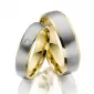 V jednoduchosti je krása! Oceľové snubné prstene mierne polguľatého profilu s kombinovanou povrchovou úpravou vysoký lesk a mat. Navyše sú prstene pozlátené technológiou PVD vo farbe žltého zlata. Kraje prsteňa sú mierne skosené, pozlátené av lesku. Prostredná časť je v nádhernom zamatovom mate. Dámsky prsteň je osadený v matnej časti jedným žiarivým zirkónom s briliantovým brusom Signity star, ktorý dodáva zirkónu maximálnu brilanciu. Prstene majú vnútorný fit profil - zaoblenú vnútornú stranu pre príjemnejšie nosenie, nasadzovanie a odnímanie.
