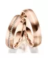 Pánský snubní prsten je v matné povrchové úpravě a zdobí ho střední proužek leštěný do vysokého lesku. Dámský prsten má místo proužku sníženou vlnku, ve které jsou vsazeny zirkony. Zirkony jsou v briliantovém brusu Signity star, který dodává zirkonům maximální brilanci. Snubní prsteny mají vnitřní Fit Profil – půlkulatou vnitřní stranu pro příjemnější nošení, nasazování a sundávání.