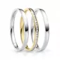 Moderní variabilní snubní prsteny jsou vyrobeny z chirurgické oceli v lesklé povrchové úpravě. Dámský prsten tvoří středový kroužek z růžového zlata se zirkony a dva bílé kroužky. Kroužky nejsou spojeny a tudíž je možno je různě prohazovat popř. nosit každý samostatně. Zirkony jsou vybroušeny briliantovým brusem Signity star, který dodává zirkonům maximální brilanci.