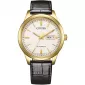 Model Citizen NY4059-09AE hodinky a tradičné spracovanie. Puzdro je vyrobené z nerezovej ocele s povrchovou úpravou v zlatom tóne, čo im dodáva elegantný až spoločenský charakter. Priemer okolo 40 mm pôsobí univerzálne – hodinky nie sú ani príliš veľké, ani malé, takže dobre sedia na väčšine zápästia.