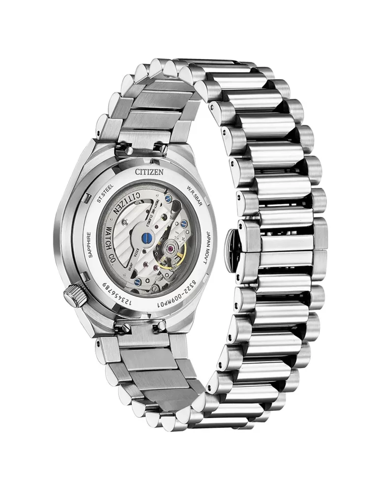 Hodinky majú puzdro vyrobené z ušľachtilej ocele, ktoré dopĺňa integrovaný oceľový náramok. Vnútri puzdra nájdeme mechanický in-house strojček Citizen 8322 s automatickým náťahom, ktorý je možné naťahovať aj manuálne korunkou. Tento strojček pracuje na frekvencii 21600 polokmitov za hodinu, disponuje 21 kameňmi a mimostrednou sekundovou rúčkou na pozícii šiestej hodiny. Činnosť strojčeka je možné pozorovať vďaka priehľadnému dynku. Jednoduchý a výborne čitateľný číselník je chránený zafírovým sklíčkom, ktoré je maximálne odolné voči poškriabaniu. Vodeodolnosť týchto hodiniek je 50 m, bez problému teda zvládnu menší kontakt s vodou, ako dážď alebo sprcha.