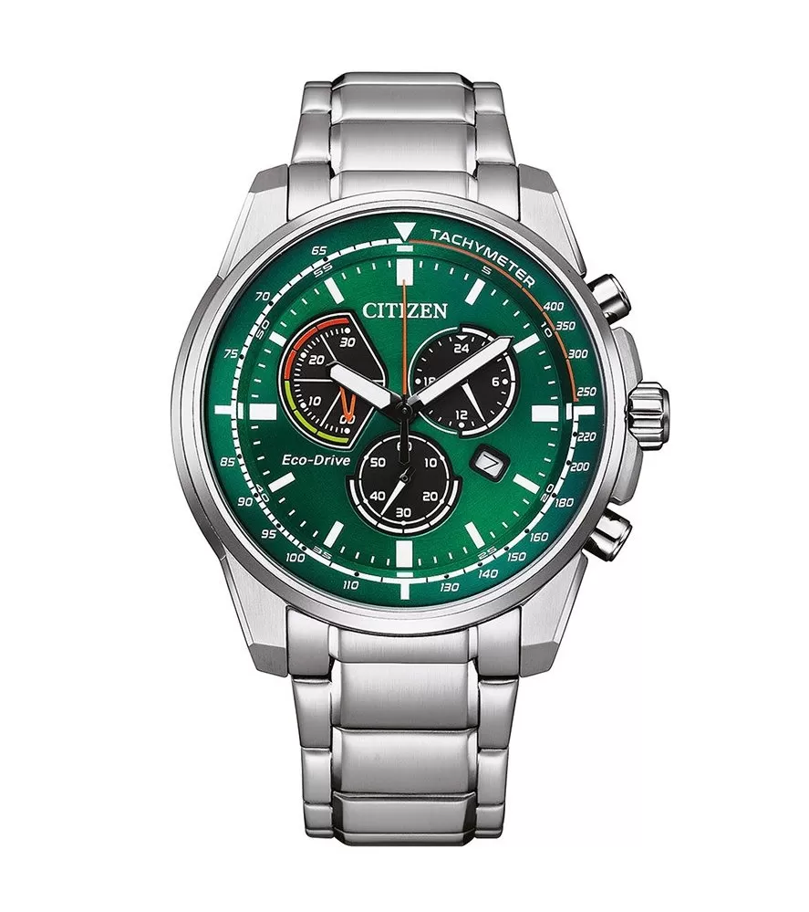 Citizen AT1190 hodinky zapôsobia na športový dizajn, trvanlivosť a praktické vlastnosti. Hlavnou výhodou je stopky s centrálnou druhou rukou a tachymetrickou stupnicou pre meranie rýchlosti. Puzdro s priemerom 44 mm padá skôr na širšie zápästie a vďaka odolnosti proti vode 100 m je tiež vhodná na kúpanie. Solárny napájací zdroj poskytuje v tme až šesťdesiatkovú rezervu, takže nie je potrebné vymieňať batériu. AT11190 je ideálnou voľbou pre tých, ktorí hľadajú štýlové a funkčné športové hodinky.