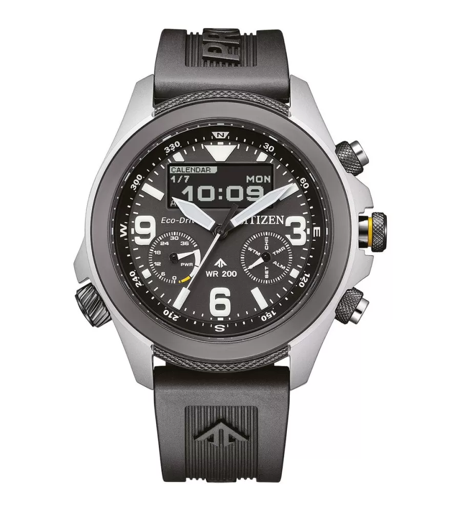 Citizen JV1 športové pánske hodinky z radu PromasterLand, ktoré kombinujú analógový čas s digitálnym displejom a mnoho praktických funkcií. Sú… Celý popis