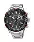 Model CB5001-57E patrí do rady Promaster a ide o výrazne športové, technicky vybavené pánske hodinky. Puzdro aj náramok sú z nerezovej ocele, pričom hodinky pôsobia robustne – priemer okolo 46–47 mm je skôr väčší a dodáva im výrazný, „nástrojový“ charakter. Čierny ciferník je pomerne komplexný, obsahuje viac subciferníkov a funkcií, ale vďaka kontrastným prvkom a luminiscencii zostáva dobre čitateľný aj v tme. Celý číselník chráni zafírové sklíčko s antireflexnou úpravou.