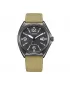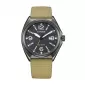 Púzdro s priemerom 40 mm je vyrobené z nerezovej ocele s čiernou PVD úpravou. Ciferník chráni minerálne sklíčko, ktoré je odolné proti bežnému poškriabaniu. Prehľadný čierny číselník s arabskými číslicami je doplnený dátumovkou na pozícii 3 hodín a luminiscenčnými ručičkami pre ľahké odčítanie času aj pri horšom osvetlení. Hodinky disponujú vodotesnosťou 10 ATM (100 m), takže sú vhodné pre bežný kontakt s vodou, sprchovanie aj plávanie. Vďaka ľahkému textilnému remienku sú pohodlné pri celodennom nosení.