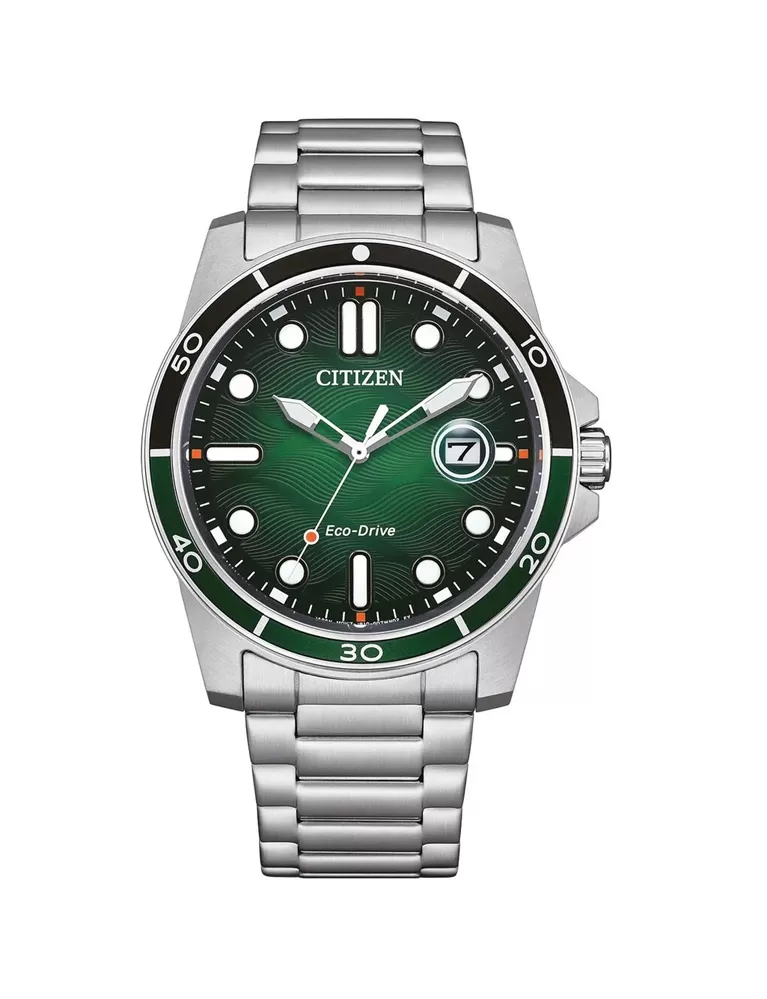 Pánske hodinky Citizen Eco-Drive Sporty Marine AW1811-82X si svojich majiteľov získavajú predovšetkým svojim športovým prevedením a prehľadným dizajnom. Veľkou výhodou je pohon Eco-Drive, ktorý zaisťuje napájanie pomocou energie zo svetla, pričom odpadá nutnosť výmeny batérie. Hodinky Citizen AW1811-82X majú puzdro vrátane náramku vyrobenej z ušľachtilej ocele. Vnútri puzdra sa skrýva in-house strojček Citizen J810, ktorý disponuje svetlom dobíjaným akumulátorom s rezervou chodu až 8 mesiacov a tiež funkciou indikátora vybitia akumulátora. Praktickou funkciou je potom ukazovateľ dátumu na tradičnej pozícii 3. hodiny. Ten je navyše zvýraznený lupou – tzv. "kyklopom". Prehľadný číselník tohto modelu je chránený minerálnym sklíčkom. Vodeodolnosť týchto hodiniek je 100m, bez problému teda zvládnu aj väčší kontakt s vodou, ako je plávanie. Luneta tohto modelu nie je otočná.