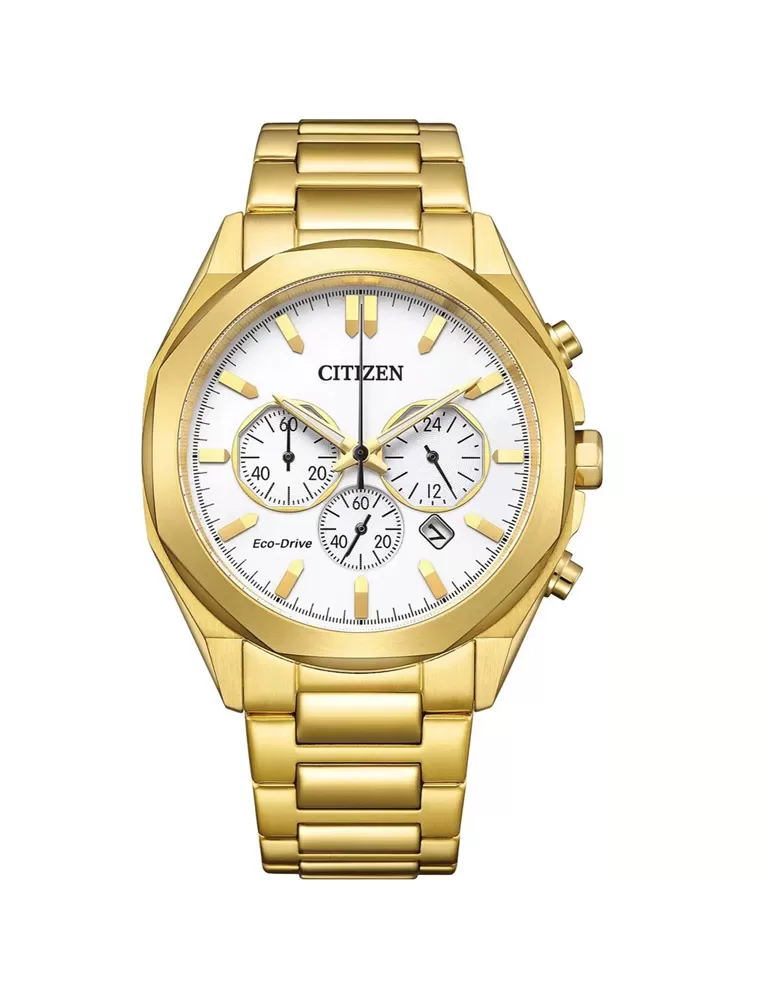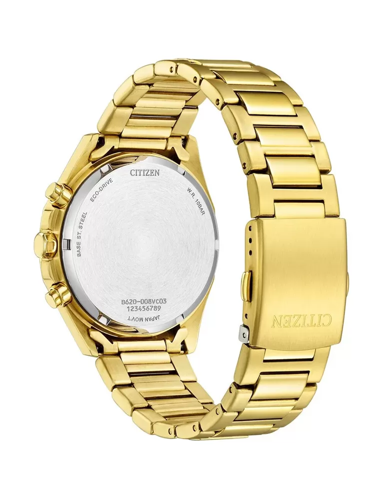 Hodinky Citizen Eco-Drive Chronograph CA4592-85A si svojich majiteľov získava predovšetkým športovým vzhľadom a pomerne vysokou odolnosťou. Samozrejmosťou je pohon Eco-Drive, ktorý zaisťuje napájanie pomocou energie zo svetla, pričom odpadá nutnosť výmeny batérie. Hodinky Citizen CA4592-85A majú puzdro vrátane náramku vyrobené z ušľachtilej ocele s PVD úpravou zlatej farby. Toto puzdro v sebe skrýva in-house strojček Citizen B620, ktorý disponuje svetlom dobíjaným akumulátorom s rezervou chodu až 9 mesiacov a disponuje tiež funkciou indikátora vybitia akumulátora. Ďalšie jeho funkcie sú stopky, dvadsaťštyrihodinový subčíselník a ukazovateľ dátumu na pozícii 4-5 hodiny. Zaujímavosťou stopiek je potom plynulý chod sekundovej rúčky, vďaka ktorému je možné merať čas s presnosťou 1/5 s. Prehľadný číselník je chránený minerálnym sklíčkom. Vodeodolnosť hodiniek je 100m, znesú teda bez problému aktivity ako plávanie, či drobný ponor.