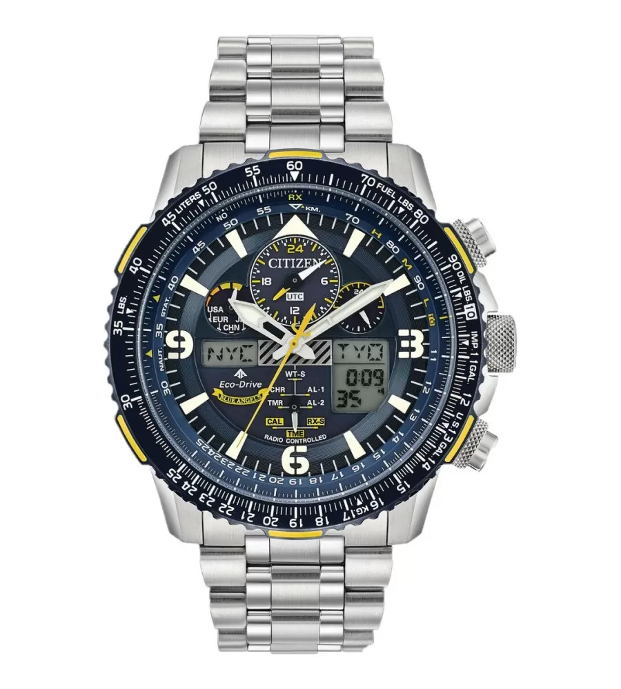 Model Citizen Promaster JY8078‑52L sú športové pánske hodinky z radu Promaster Skyhawk A‑T s veľmi bohatou výbavou a technickými funkciami ideálnymi pre aktívny životný štýl i cestovanie. Hodinky majú modrý ciferník so žltými akcentmi a kombinované analógovo-digitálne zobrazenie, ktoré dáva prístupu k viacerým údajom ako len čas. Puzdro aj ťah sú z ušľachtilej nerezovej ocele s robustným priemerom...