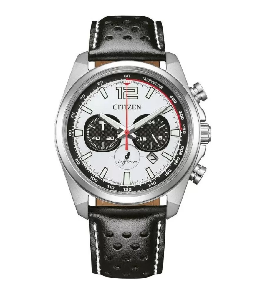 Na ciferníku nájdete tri subciferníky chronografu (stopky), 24-hodinový ukazovateľ a ukazovateľ dátumu, čo zvyšuje ich praktickosť pre každodenné použitie. Ručičky a indexy majú luminiscenčnú úpravu, takže čas je dobre čitateľný aj v slabom svetle. Hodinky sú poháňané solárnym systémom Eco‑Drive, ktorý využíva svetlo ako zdroj energie, takže nie je potrebné meniť batériu a plne nabité hodinky vydržia v chode až niekoľko mesiacov.
