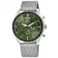 Strieborné oceľové puzdro a milánsky ťah v kombinácii so zaujímavým ciferníkom určite ocenia muži, ktorí si chcú doladiť svoj outfit zaujímavým doplnkom. Na hodinkách vynikne zelený číselník s červenými ručičkami a veľkou dátumovkou.