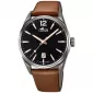 Pánske analógové hodinky majú okrúhle puzdro z nehrdzavejúcej ocele s priemerom 42 mm a s výškou 11 mm. Čierny číselník je doplnený rukami a detailmi v ružovej farbe zlata, čo dáva hodinám elegantný a moderný vzhľad. Diama obsahuje aj okno dátumu. Hodinky chránia minerálne sklo, ktoré je odolné voči škrabancom. Popruh je hnedá koža, na tŕme je úplne klasická spona. Vodíodizácia dosahuje 10 barov, takže sú vhodné nielen na príležitostné opotrebenie, ale aj na kúpanie alebo iné vodné aktivity.