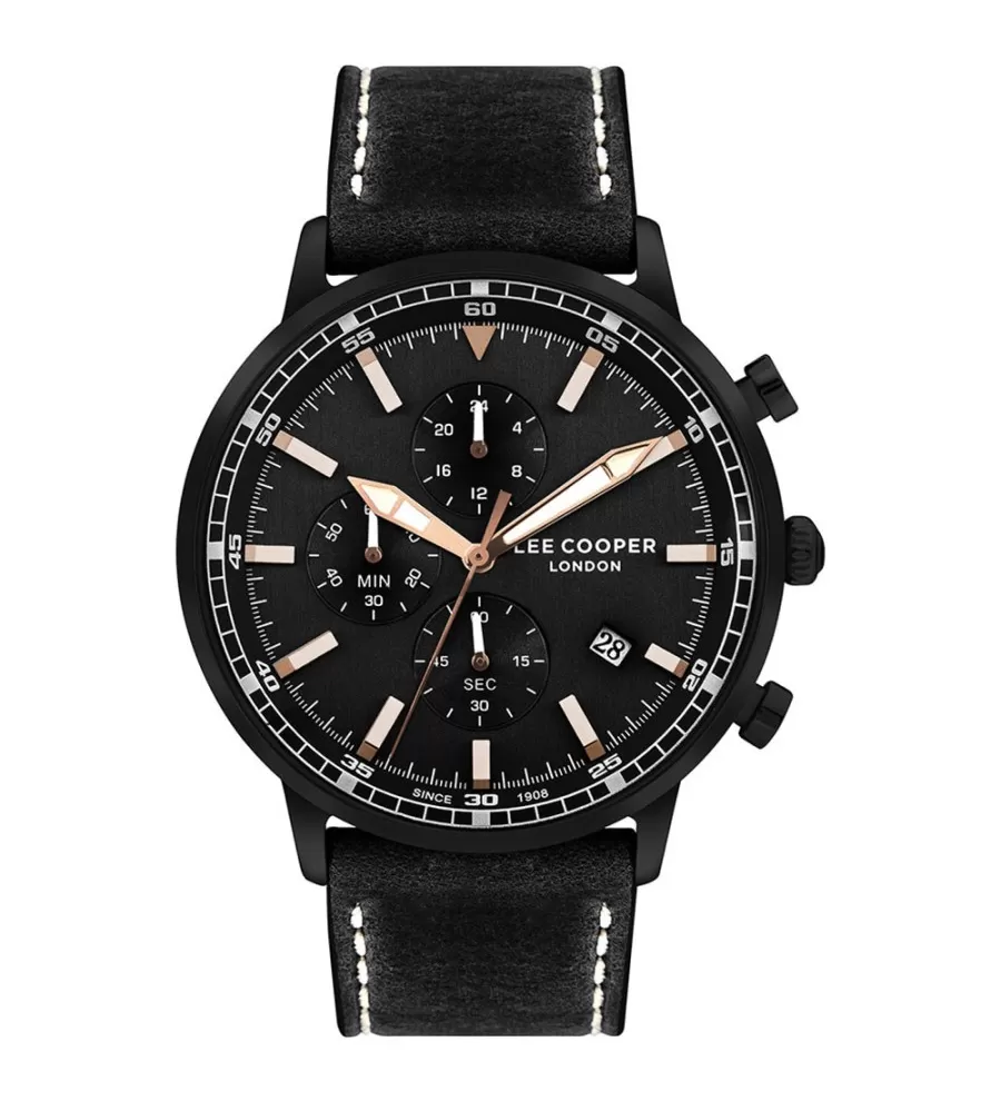 Lee Cooper LC07943.651 sú elegantné pánske hodinky s okrúhlym puzdrom vyrobeným z odolného materiálu s priemerom 46 mm v čiernej a s malým multifunkčným číselníkom v rovnakom tóne. Hodinky používajú presný kremeňový pohon, majú minerálne sklo, pracku a ponúkajú nepremokavé až 50 m.