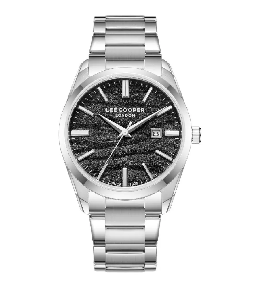 Lee Cooper LC08231.350 je mužské analógové hodinky s pohybom batérie. Majú okrúhle kovové puzdro s priemerom 41 mm v striebornej farbe a kovovým popruhom v rovnakom tóne. Čierny číselník je jednoduchý, s dvanástimi indexmi a vodotesnými až do 30 metrov, čo je vhodné na každodenné opotrebenie.