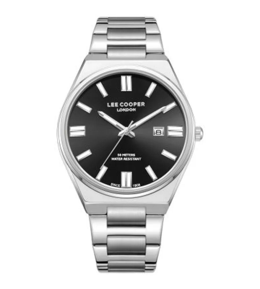 Lee Coper LC08262.350 je elegantný mužský model, ktorý sa vyznačuje okrúhlym puzdrom vyrobeným z kovu vysokej kvality a robustného kovového puzdra. Vo vnútri presný mechanizmus batérie funguje so stabilnou presnosťou +-10 sekundy mesačne. Dial je čierny, doplnený jemnými indexmi čiary a je chránený odolným minerálnym sklom. Hodinky dosahujú vodotesné 30 m. Prípad má priemer 40 mm, zatiaľ čo šírka náramku je 22 mm.