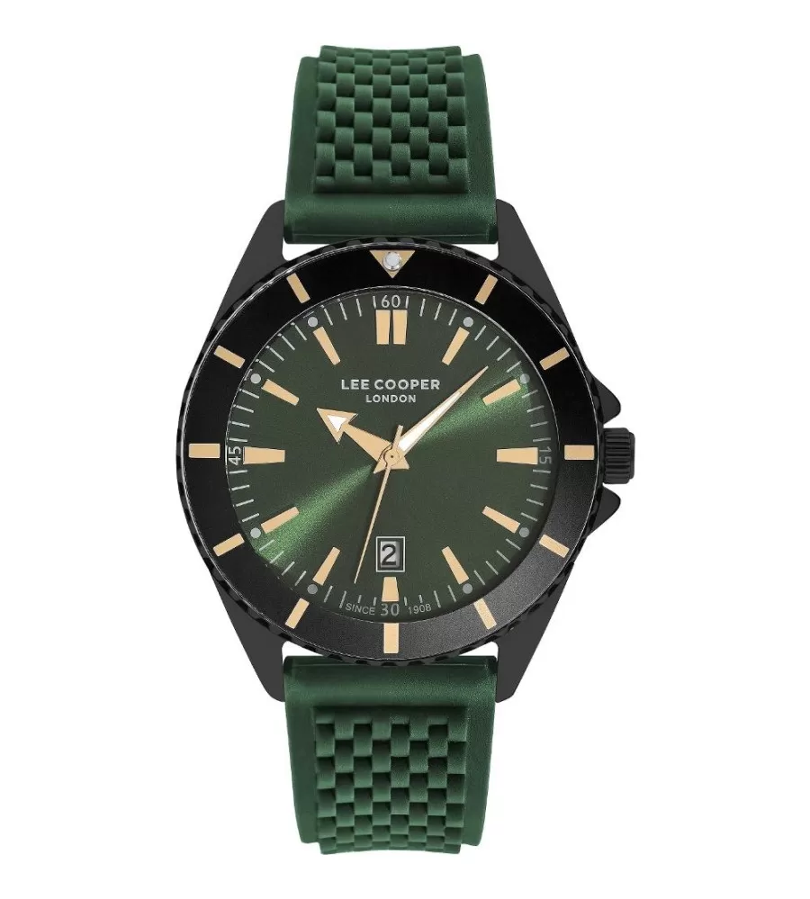 Hodinky Lee Cooper LC07361.675 sú pánske analógové hodinky s okrúhlym puzdrom s kovovým priemerom 44 mm, vyrobené v zelenej farbe. Majú silikónový sťah v zelenej farbe a kovovú pracku. Hodinky poháňa batériový strojček, sklíčko je minerálne a umožňuje zobrazenie dátumu. Sú odolné voči vode pri bežnom nosení.