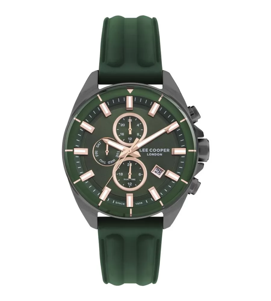 Ste odvážny muž? Tak to si obľúbite tento model náramkových hodiniek. Okrúhle púzdro je zhotovené z kvalitného kovu a opatrené povrchovou úpravou v zelenej farbe. Zelený je o číselník, ktorý je chránený minerálnym sklom. K dispozícii má dátum a dni v týždni. Celý model dopĺňa remienok z plastu aj v zelenej farbe. Hodinky Vám dokonale zvýraznia zápästie.