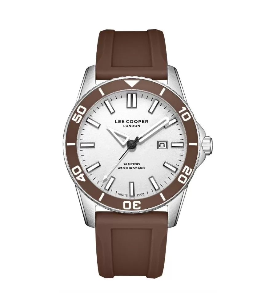 Nápadný športový model pre mužov vám nesmie chýbať. Okrúhle púzdro aj s priemerom 42 mm zdobí hnedá luneta a biely ciferník s výraznými indexmi, ktoré sú potiahnuté luminiscenčnou vrstvou. Poteší vás dátumovka na pozícii tretej. Celý model dopĺňa silikónový remienok v hnedej farbe a kovová pracka. Hodinky sú vhodné na každodenné nosenie.