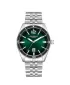Tieto elegantné pánske hodinky vyrobené z vysokokvalitného kovu majú klasický vzhľad, ktorý si tak obľúbite. Kruhové puzdro 42 mm je napájané batériami s dvojročnou životnosťou. Upúta vás zelený ciferník s jednoduchými ručičkami a hodinovými indexmi a dátumovkou na pozícii tretej hodiny. Hodinky sú vhodné na každodenné nosenie aj spoločenské nosenie.