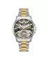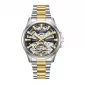 Luxusný model pánskych náramkových hodiniek má mechanický strojček, ktorý vidíte cez ciferník. Hodinky sú vyrobené z kvalitného kovu, ktorý je miestami upravený PVD povrchovou úpravou vo farbe žltého zlata. Tento jedinečný model je vhodný na každodenné nosenie aj do spoločnosti.