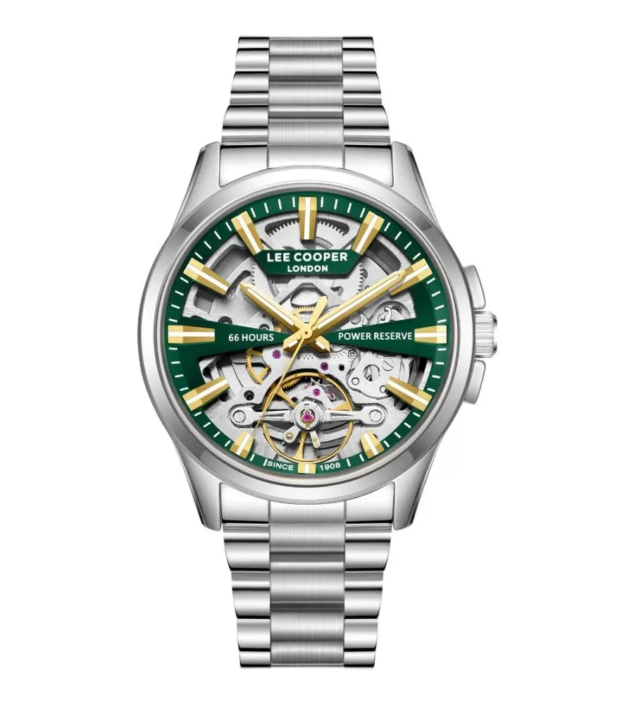 Luxusný model pánskych náramkových hodiniek má mechanický strojček, ktorý vidíte cez ciferník. Hodinky sú vyrobené z kvalitného kovu. Tento jedinečný model je vhodný na každodenné nosenie aj do spoločnosti.