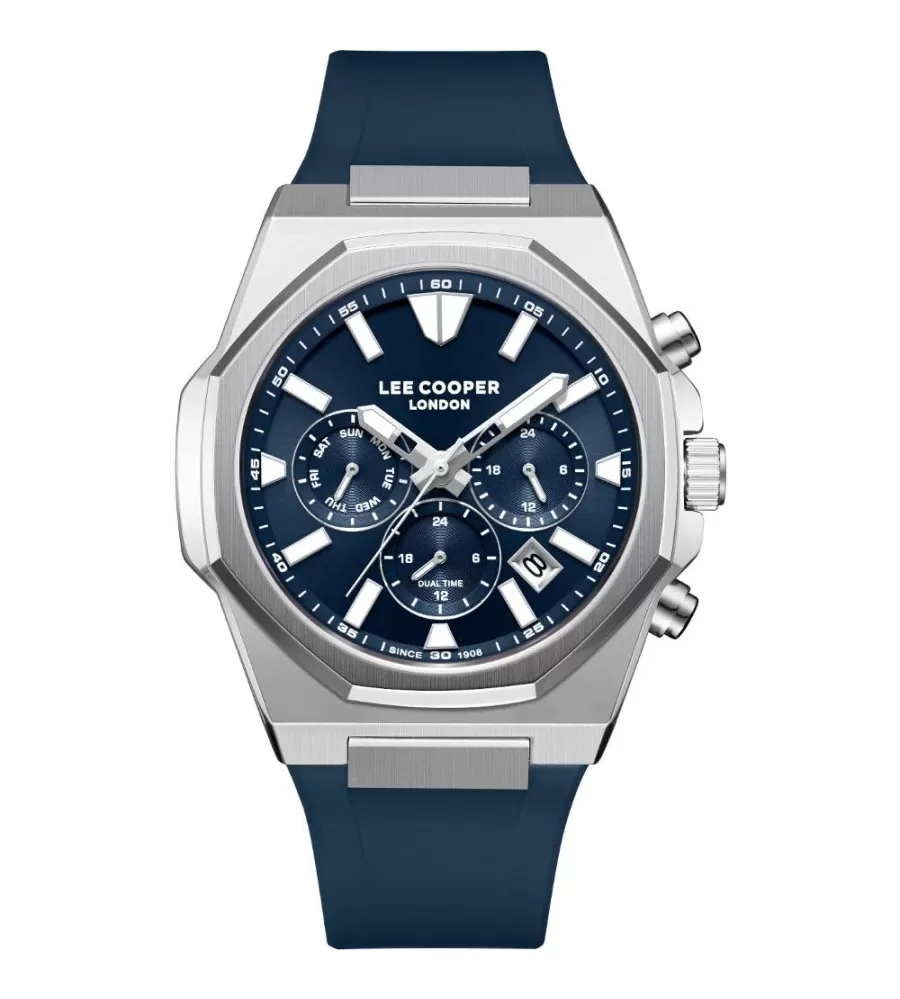 Pánské náramkové hodinky mají osmihranné pouzdro vyrobeno z kvalitního kovu o průměru 44 mm. Zaujme Vás přehledný číselník v modré barvě, který má k dispozici datum a dny v týdnu. Pánský model doplňuje silikonový řemínek, který je velmi oblíbený pro svou pohodlnost, například při sportu. Hodinky jsou vhodné pro každodenní nošení.
