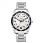 Pánské hodinky ve sportovním designu jsou vyrobeny z velmi kvalitního kovu ve stříbrné barvě. Bateriové pouzdro o průměru 42 mm zdobí černá luneta.… Celý popis