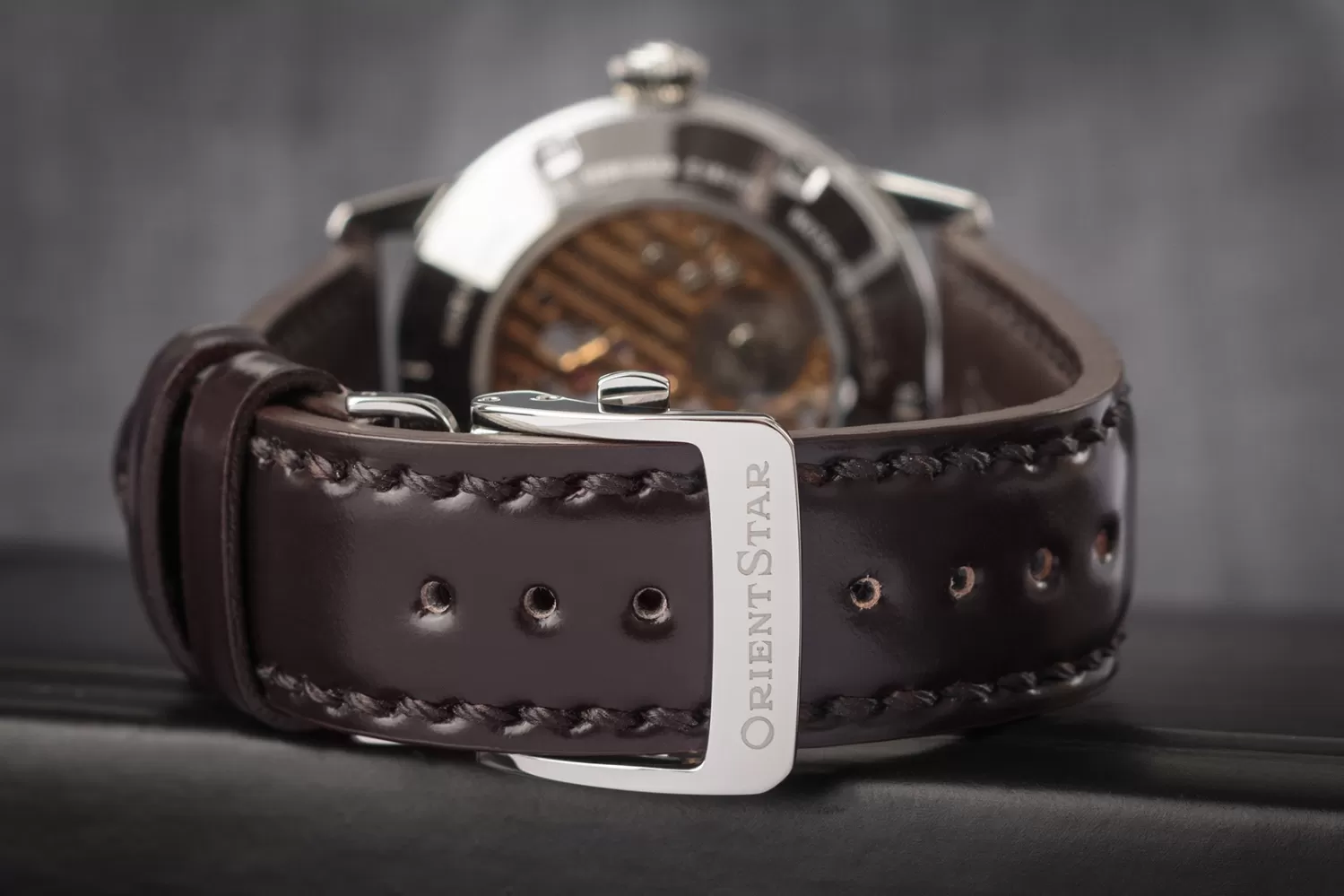Orient Star RE-AZ0004S00B sú majstrovské hodinky z luxusnej kolekcie Orient Star s nádherným skeleton priehľadom na strojček. Hodinky majú robustné puzdro z nerezovej ocele s priemerom 40,5 mm, ktoré je vodotesné do 50 metrov. Oceľové puzdro je v kombinácii s elegantným koženým remienkom. Hodinky sú chránené zafírovým sklíčkom odolným proti poškriabaniu, zaisťujúce ich čitateľnosť aj v tých najnáročnejších podmienkach. Orient Star RE-AZ0004S00B sú skutočne mimoriadne hodinky, ktoré sú ideálne pre moderného muža, ktorý oceňuje štýl, výkon a odolnosť.