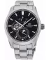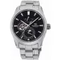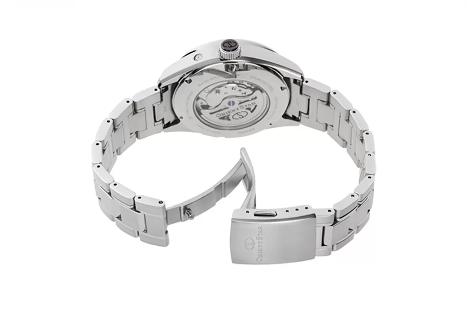 Orient Star Open Heart Automatic RE-AY0001B00B bude vďaka svojmu elegantnému štýlu vždy dobre ladiť s vašim outfitom. Puzdro a remienok je vyrobené z nerezovej ocele, ktorá vyniká svojou odolnosťou. Zafírové sklíčko s antireflexom chráni čierny ciferník s otvoreným priehľadom na samotný strojček hodiniek a tiež ukazovateľ rezervy chodu a fázy mesiaca.