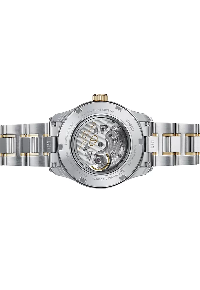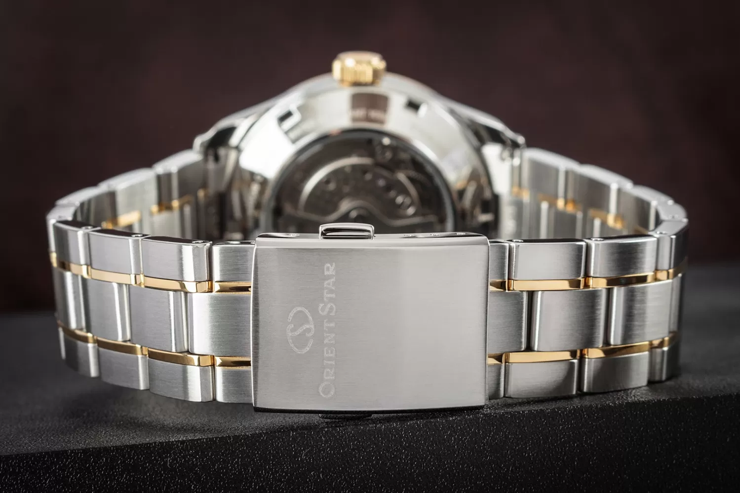 Orient Star RE-AT0004S00B sú neuveriteľne štýlové hodinky, ktoré sa veľmi dobre hodia takmer na každú príležitosť. Puzdro a remienok je vyrobené z nerezovej ocele, ktorá vyniká svojou farebnou stálosťou a vysokou odolnosťou. Navyše s čiastočným PVD pozlátením vo farbe žltého zlata. Hodinky majú indikátor rezervy chodu na pozícii 12 a „otvorené srdce“ na pozícii 9. Cez tento otvor na béžovom ciferníku môžete sledovať bežiaci pohyb strojčeka.