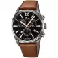 Tento model sú pánske hodinky s chronografom, ktorý kombinuje športovú funkčnosť s elegantným vzhľadom. Majú okrúhle puzdro z nehrdzavejúcej ocele s priemerom asi 42 mm a výškou asi 11 mm. Čierny číselník chráni minerálne sklo a je doplnený kontrastnými ružovými rukami a indexmi. Hodinky sú vybavené stopkami, chronografom a je tu tiež okno. Presný beh sa postará o pohyb kremenného kremenného Miyota JS05 na batérii. Popruh je vyrobený z hnedej kože a je pripevnený klasickou prackou.