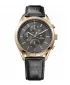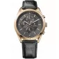 Luxusný pánsky model má okrúhle púzdro vyrobené z vysoko kvalitnej nerezovej ocele, ktorá je ošetrená PVD povrchovou úpravou vo farbe žltého zlata. Šedý číselník chránený minerálnym sklom má k dispozícii dátum a deň. Hodinky dopĺňa remienok z pravej kože.