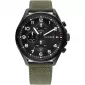 Pohodlné pánske hodinky sú tvorené oceľovým puzdrom s PVD povrchovou úpravou v čiernej farbe. Iste oceníte veľmi prehľadný číselník s dualným časom a arabskými číslicami. Pánsky model dopĺňa textilný remienok v zelenej farbe a oceľovou sponou. Do tohto modelu sa zamilujete.