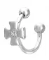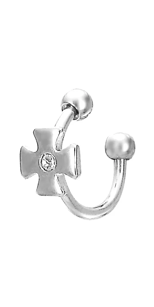 Moderný piercing nielen do bradavky je vyrobený z chirurgickej ocele v lesklej povrchovej úprave. Piercing je ozdobený guličkami a krížom so zirkónom.