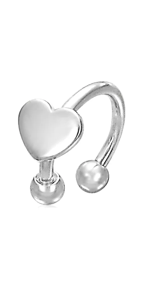 Moderný piercing nielen do bradavky je vyrobený z chirurgickej ocele v lesklej povrchovej úprave. Piercing je ozdobený guličkami a srdiečkom.