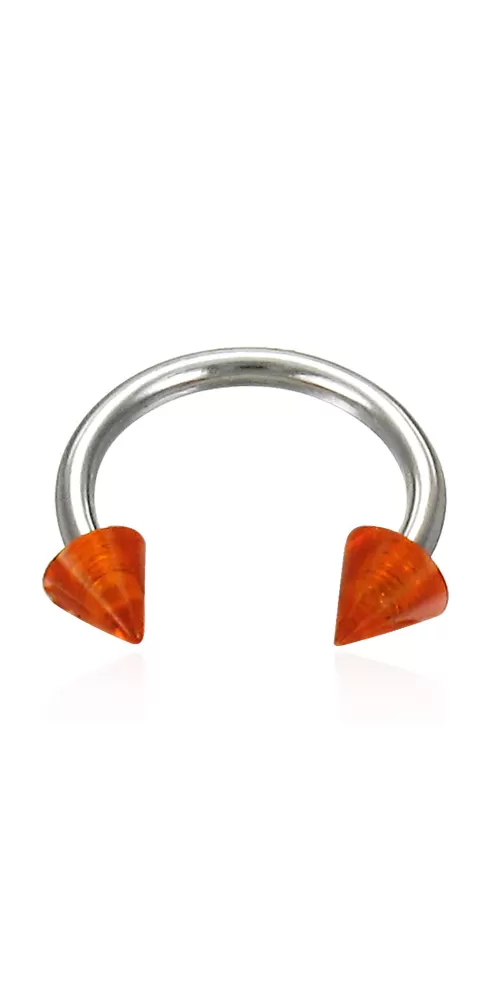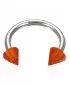 Moderný piercing nielen do bradavky je vyrobený z chirurgickej ocele v lesklej povrchovej úprave Piercing je ozdobený červenými hrotmi.