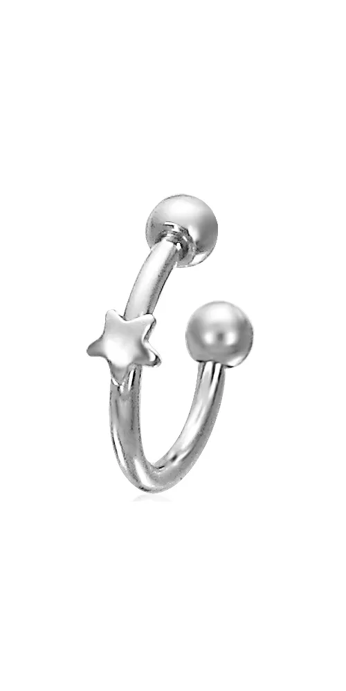 Moderný piercing nielen do bradavky je vyrobený z chirurgickej ocele v lesklej povrchovej úprave. Piercing je ozdobený guličkami a hviezdičkou.  … Celý popis