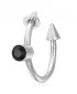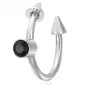 Moderný piercing nielen do bradavky je vyrobený z chirurgickej ocele v lesklej povrchovej úprave. Piercing je ozdobený hrotmi a čiernym zirkónom.