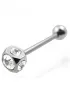 Moderný piercing do jazyka je vyrobený z chirurgickej ocele v lesklej povrchovej úprave. Piercing je ozdobený kockou v ktorej sú zasadené biele… Celý popis