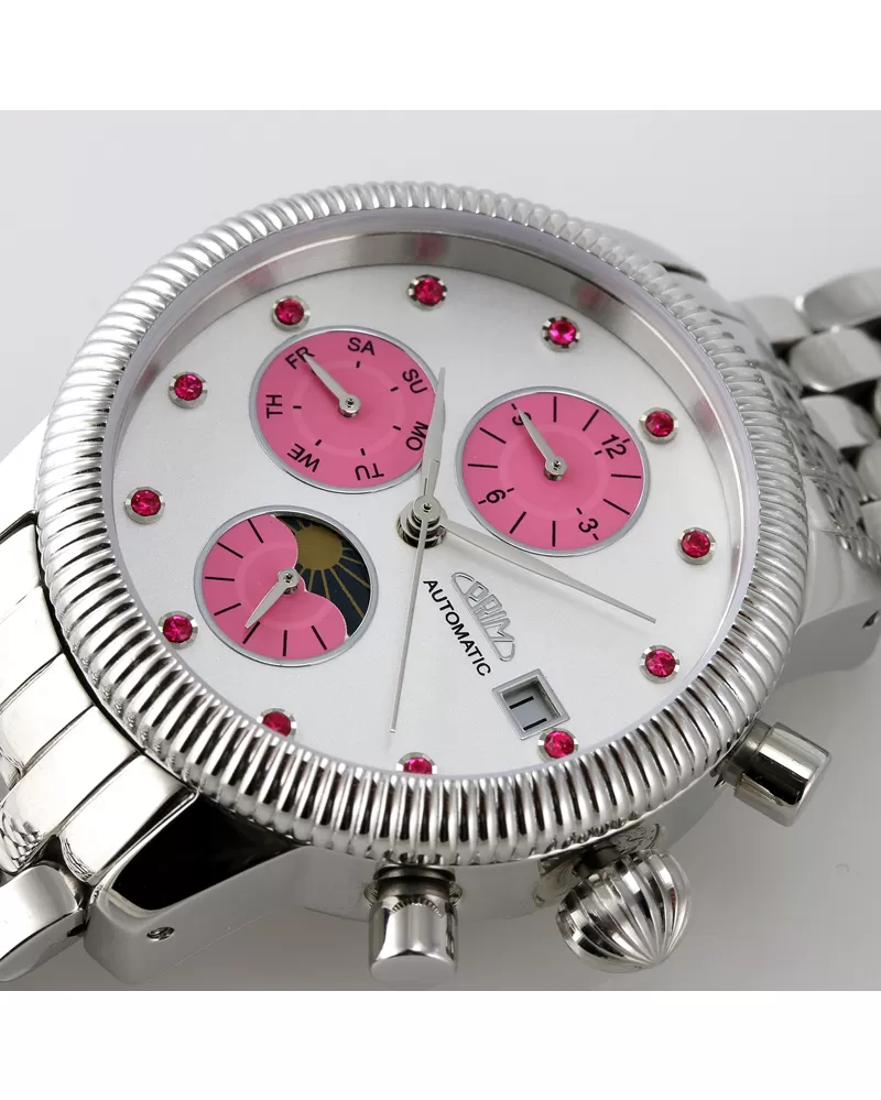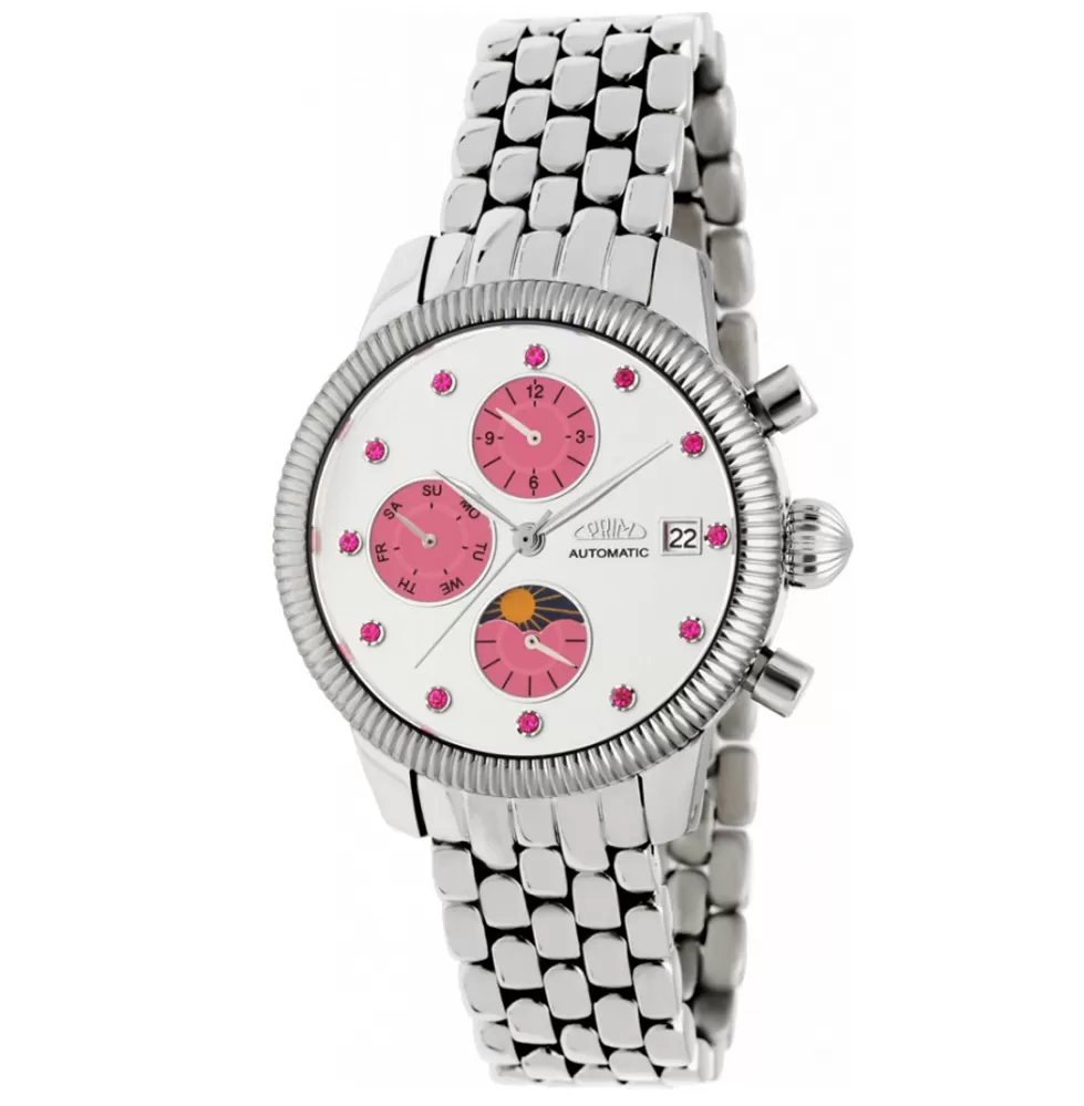 V novej kolekcii dámskych hodiniek je pre vás opäť pripravených množstvo automatických modelov. Tento model vás očaruje svojim prepracovaným vzhľadom, ktorý snáď nikdy neomrzí. Hodinky sú vyrobené z ušľachtilej ocele, ktorá je leštená do vysokého lesku. Ciferník zaujme prevedením a tiež má k dispozícii funkcie, ktoré určite využijete. Leštené puzdro skrýva mechanizmus, ktorý sa naťahuje automaticky z pohybov vášho zápästia pri bežnom nosení alebo mechanickým otáčaním korunky.