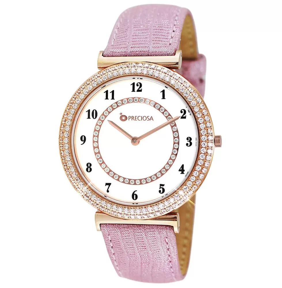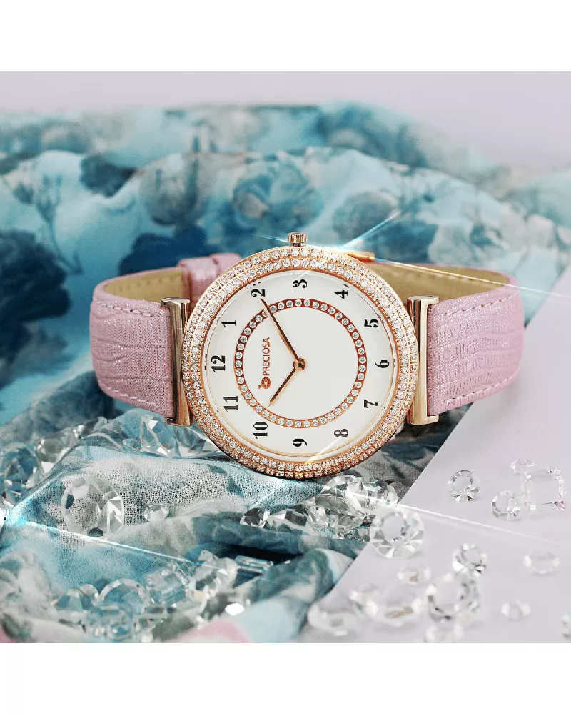 Dizajnové dámske hodinky PRIM Preciosa, ktoré oslnia svojim klasickým a nadčasovým vzhľadom. Čistý dizajn hodiniek vo farebnom modernom prevedení zanechá skutočný dojem. Puzdro je vyrobené z ocele, upravenej leštením do vysokého lesku. Zdobenie puzdra kubickou zirkóniou PRECIOSA je prevedené CNC technológiou, kedy sú kryštály fasované do oceľového puzdra.