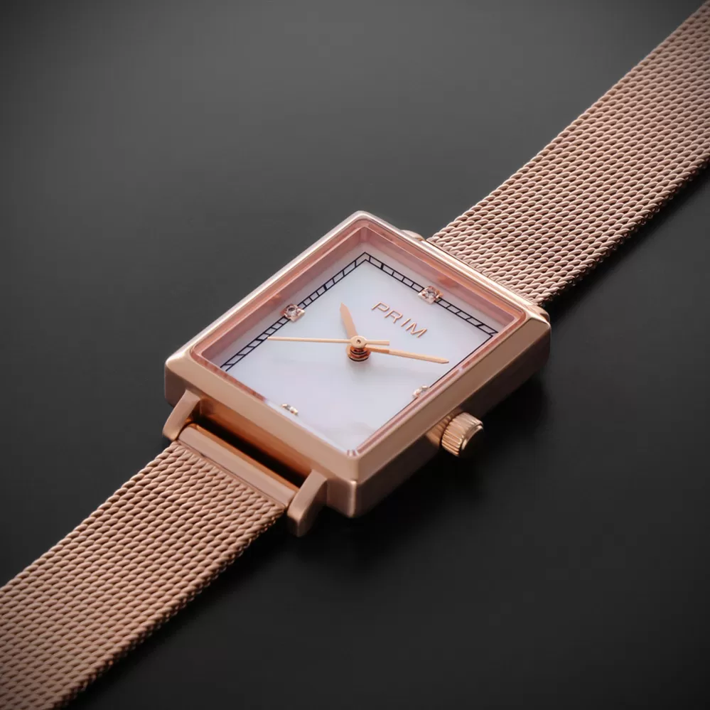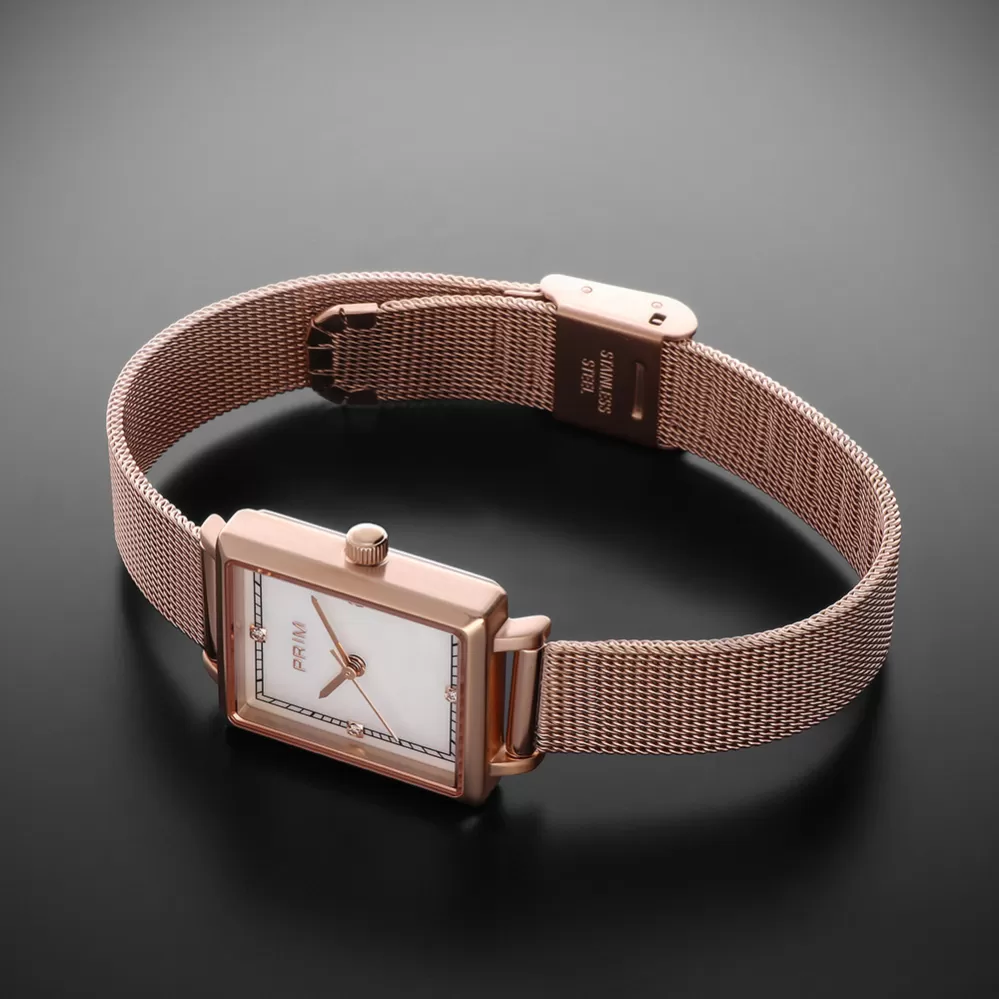 Luxusné dámske hodinky PRIM Aria Lady Diamond sú vyrobené z ušľachtilej ocele 316L a zdobí ich perleťový ciferník so 4 pravými diamantmi. Sú ideálne ako do spoločnosti, tak na každodenné nosenie do kancelárie, vďaka svojmu elegantnému a jemnému dizajnu. Zafírové sklo s antireflexnou a antitouch úpravou zaisťuje odolnosť a skvelú čitateľnosť. Vodeodolnosť 5 ATM zaručuje ochranu pri bežnom kontakte s vodou. Každý kus je súčasťou limitovanej edície s 200 kusmi.