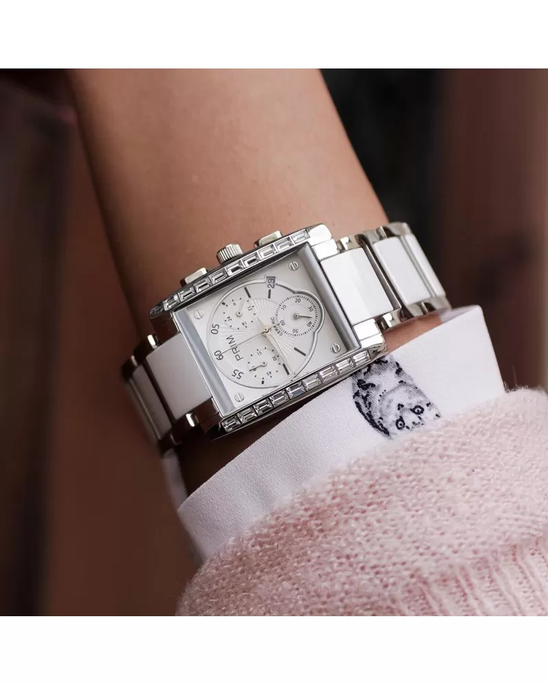 Zaujímavé a originálne dámske náramkové hodinky Prim - W02P.10161.A Vás zaujmú na prvý pohľad. Ich krásny remienok je vyrobený z kombinácie nerez ocele 316L a keramiky, ktorá je u tohto modelu Prim - W02P.10161. Ciferník chráni veľmi odolné minerálne sklo. Je v bielej farbe a zobrazuje čas, dni v týždni, 12/24 režim a k dispozícii má aj dátum. Hodinky Prim - W02P.10161.A Vás zaručene nesklamú.