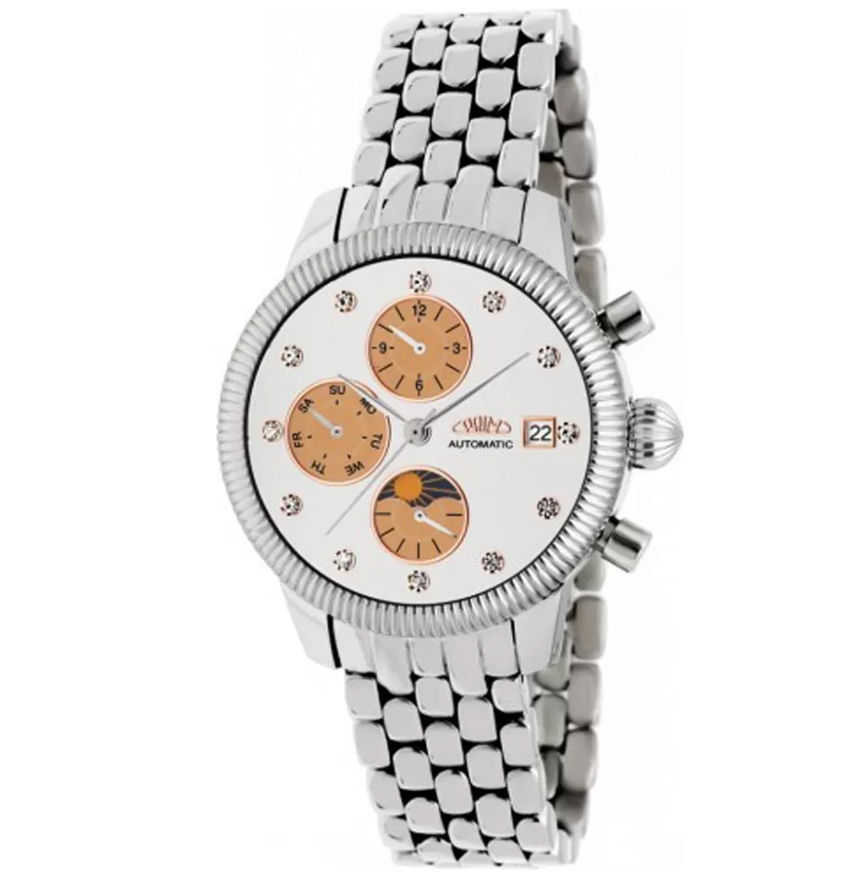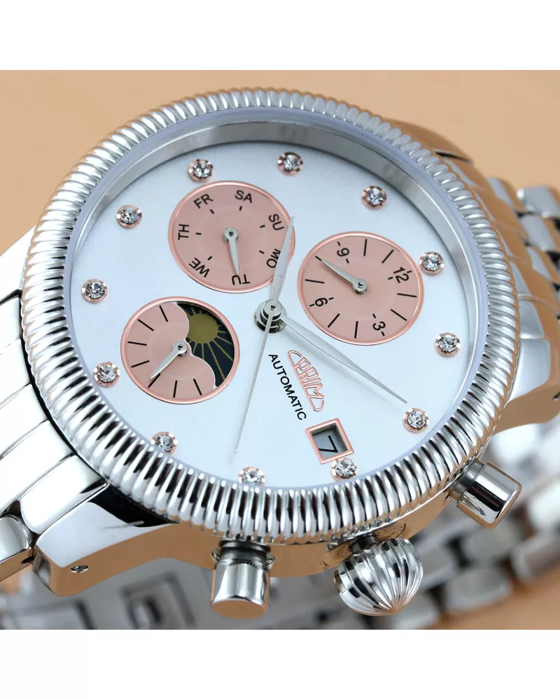 V novej zbierke dámskych hodiniek je pre vás veľa automatických modelov. Tento model vás očarí svojím sofistikovaným vzhľadom, ktorý nikdy nebude unavený. Hodinky sú vyrobené z vznešenej ocele, ktorá je leštená na vysoký lesk. Dôlezovka je ohromený dizajnom a má tiež funkciu, ktorú určite použijete. Leštené puzdro skrýva mechanizmus, ktorý sa automaticky tiahne od pohybov vášho zápästia v normálnom opotrebení alebo mechanickej rotácii koruny.