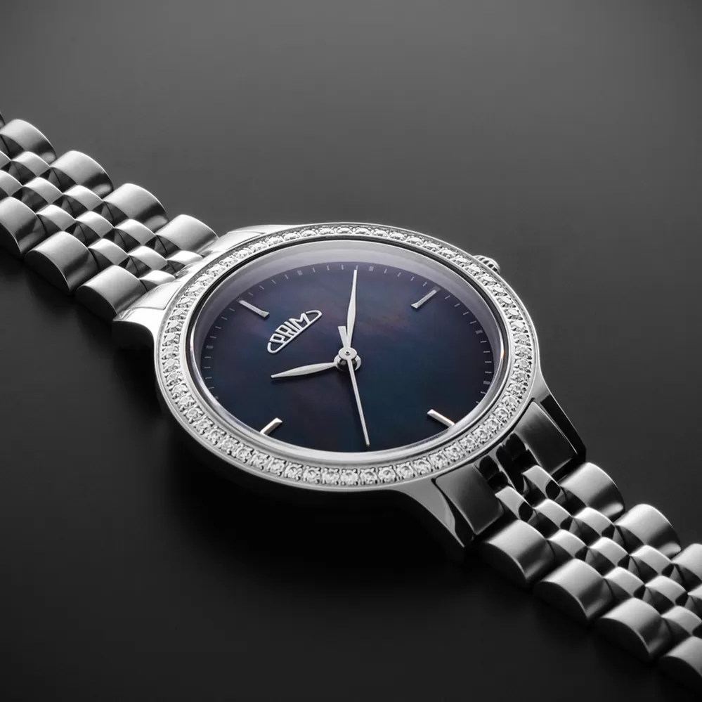 Objavte nadčasovú eleganciu a jemnú krásu s naším novým modelom dámskych hodiniek PRIM Olympia Modern. PRIM Olympia Modern sú vyrobené z ušľachtilej ocele 316L, leštené do vysokého lesku. Vodeodolnosť 5 ATM zaručuje odolnosť proti vode pri bežnom používaní. Safirové sklo s antitouch a antireflexnou vrstvou u tohto dámskeho modelu samozrejmosťou. Vybrať si môžete z mnohých farebných prevedení s populárnym jubilee. ťahom alebo koženým remienkom s uchytením "quick release" systémom pre ľahké vymenenie remienka.