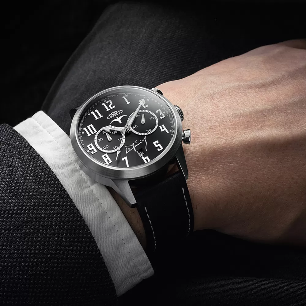Hodinky venované M. R. Štefánikovi a jeho fanúšikom. Rovnako výnimočný ako príbeh značky PRIM, v ktorom hrdo už 22 rokov aj životná cesta Milana Rastislava Štefánika (1880 – 1919). Zásadné osobnosti českých dejín sú inšpiráciou už dlho niekoľko rokov. Táto limitovaná edícia hodiniek je vyrobená v celkovom počte 50ks, pričom každý farebný variant nesie svoje vlastné číslo limitovanej edície. V edícii hodiniek je použitý kaliber NE86 a patrí medzi najzaujímavejšie chronografy s dokonalou presnosťou. Samotný ciferník je upravený klasickou elegantnou úpravou a vytvára tak zjednotený celok, ktorý vyzdvihujú brúsené, ručne fasované arabské čísla spolu s minútovou stupnicou. Samotný ciferník je doplnený symbolikou sokola - vyznamenaním Kríža Milana Rastislava Štefánika.