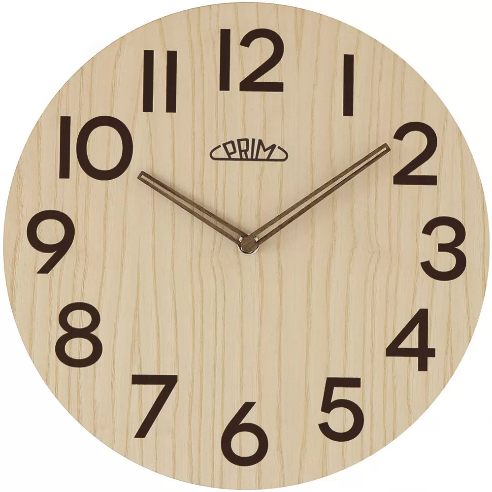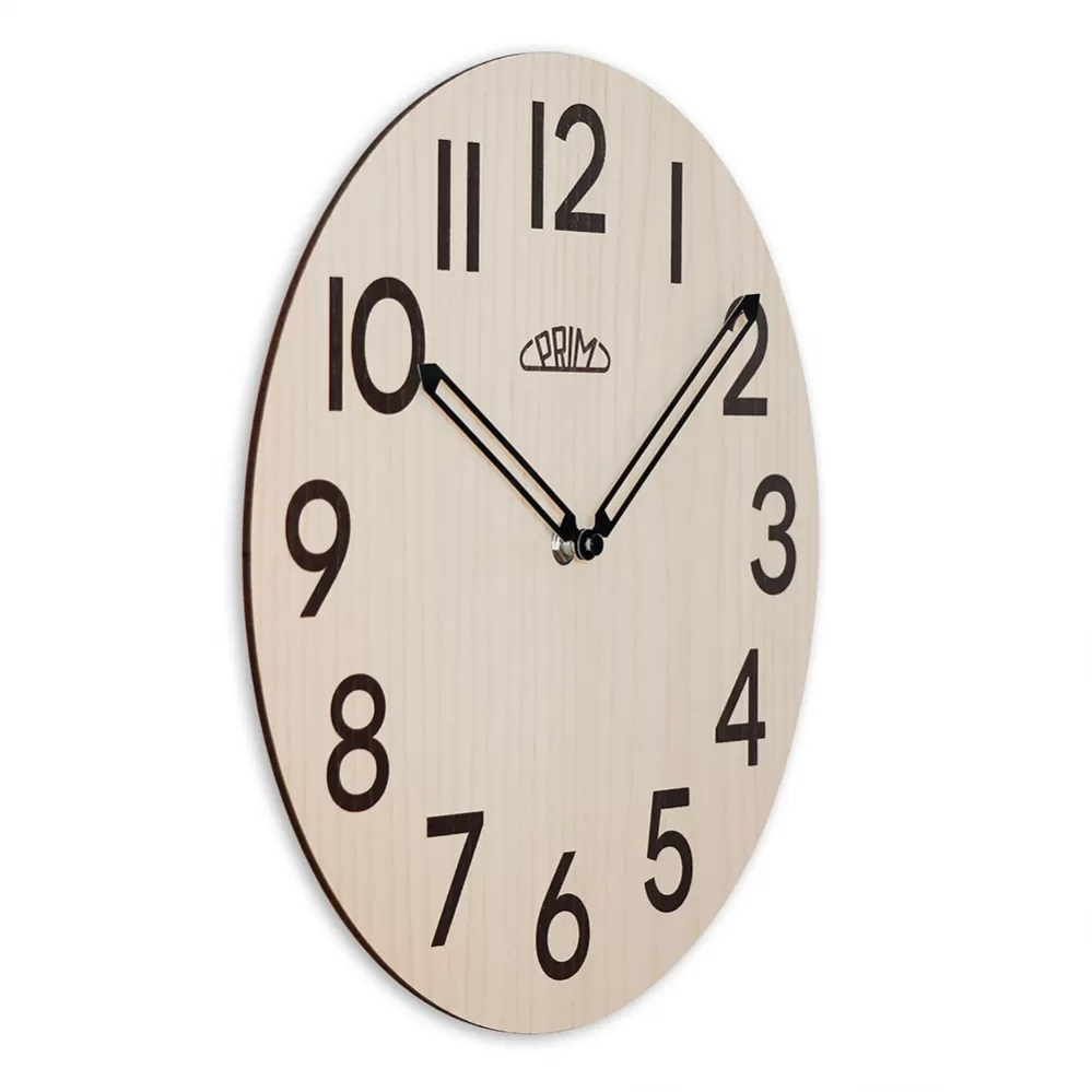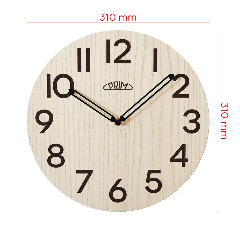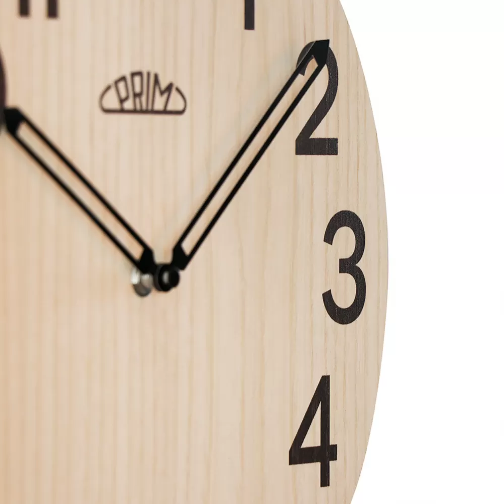 Nástenné drevené hodiny PRIM Genuine Veneer sú jednoduché hodiny vyrobené z kvalitnej drevenej dyhy s hrúbkou 4 mm. Variant 5350 je doplnený rúčkami z rovnakého materiálu, zatiaľ čo variant 5190 má sekundovú rúčku. Číslice a logo sú potlačené technológiou UV tlač a hodiny sú vybavené strojčekom s plynulým chodom. S rozmermi 310 x 38 mm, sú napájané jednou ceruzkovou batériou AA. Povrchové nedokonalosti sú prirodzenou vlastnosťou dreva a nemôžu byť predmetom reklamácie.